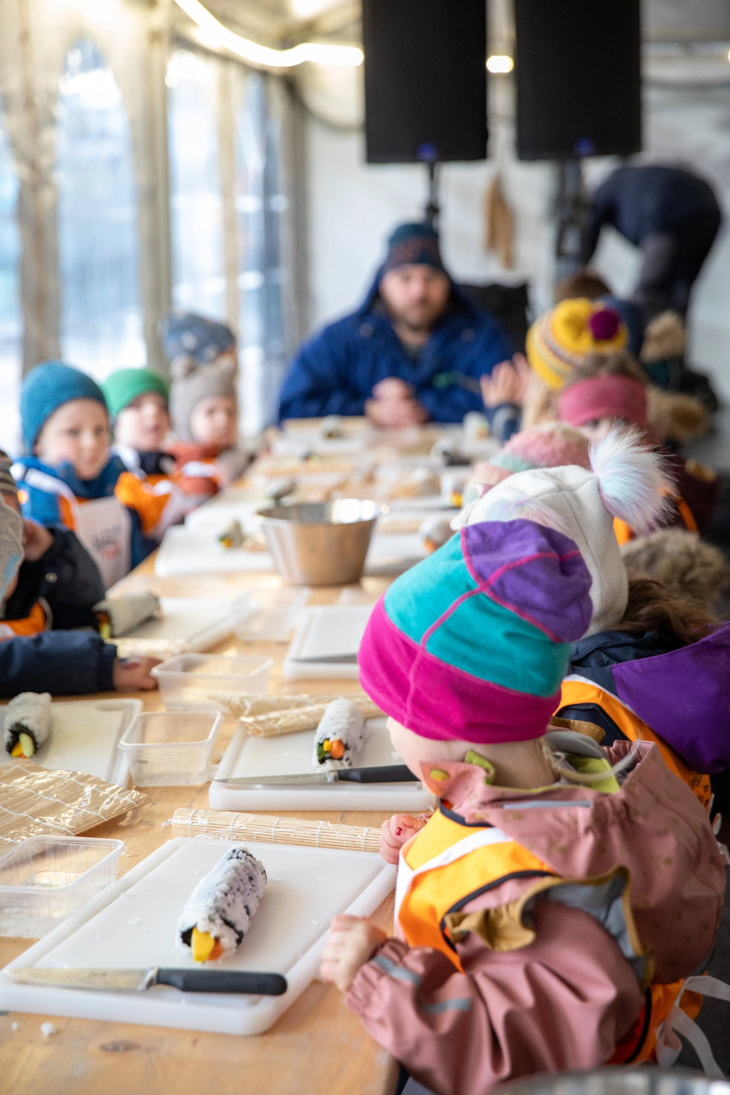 På matverkstedet får barna lage sjømat selv sammen med SalMar og Sabrura Sticks & Sushi. Her blir det enkle, morsomme oppgaver, smaking og ekte mestringsfølelse – mens barna lærer hvor maten kommer fra og hvordan den kan tilberedes.